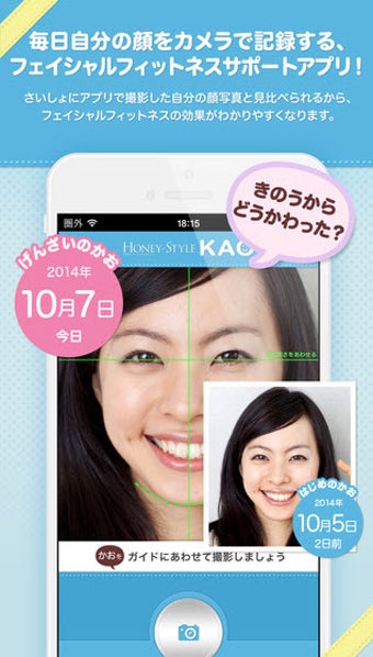 HONEY-STYLE KAO (ハニースタイル カオ)は、毎日自分の顔を撮影することで、顔の形の変化を記録できるツールです。